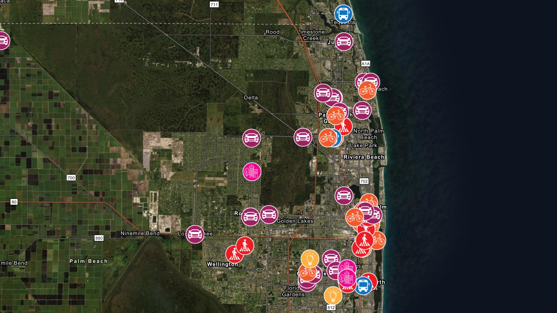 The MPO’s interactive map allows viewers to enter transportation-related comments, suggestions and questions throughout Palm Beach County.