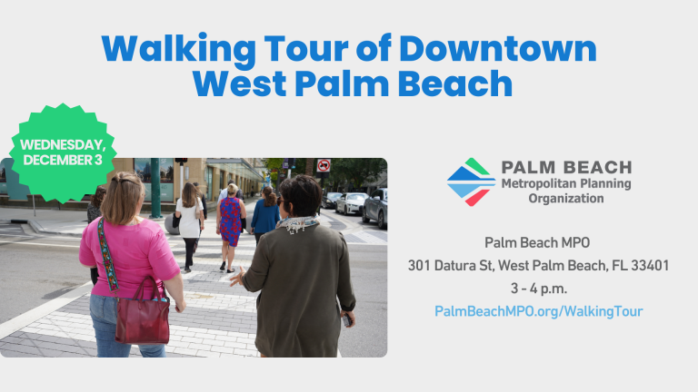 Walking Tour of Downtown West Palm Beach Join the Palm Beach MPO and West Palm Beach DDA for a mobile tour on walkability and placemaking in downtown WPB. Explore how public-private partnerships,